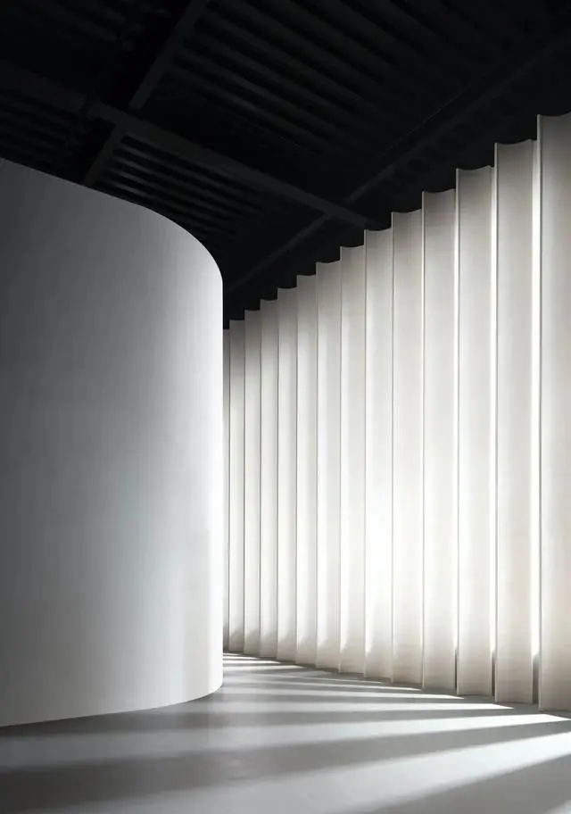 我們運用波浪形的墻壁來劃分空間,有利于引領看展人從一個空間移動到另一側空間。