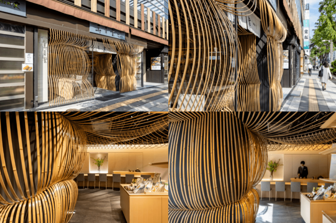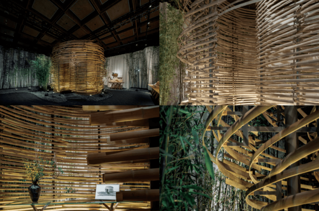 竹子,是隈研吾最喜歡運用的材料之一。早在2002年他在中國長城設計的項目——竹屋,利用竹子的靈活特性,創造了可以彎曲和展開的竹傘并填滿了室內空間,直到今天都為人們津津樂道。這種天然又輕盈的材質在隈研吾手下,幻化出無數美麗設計佳作。