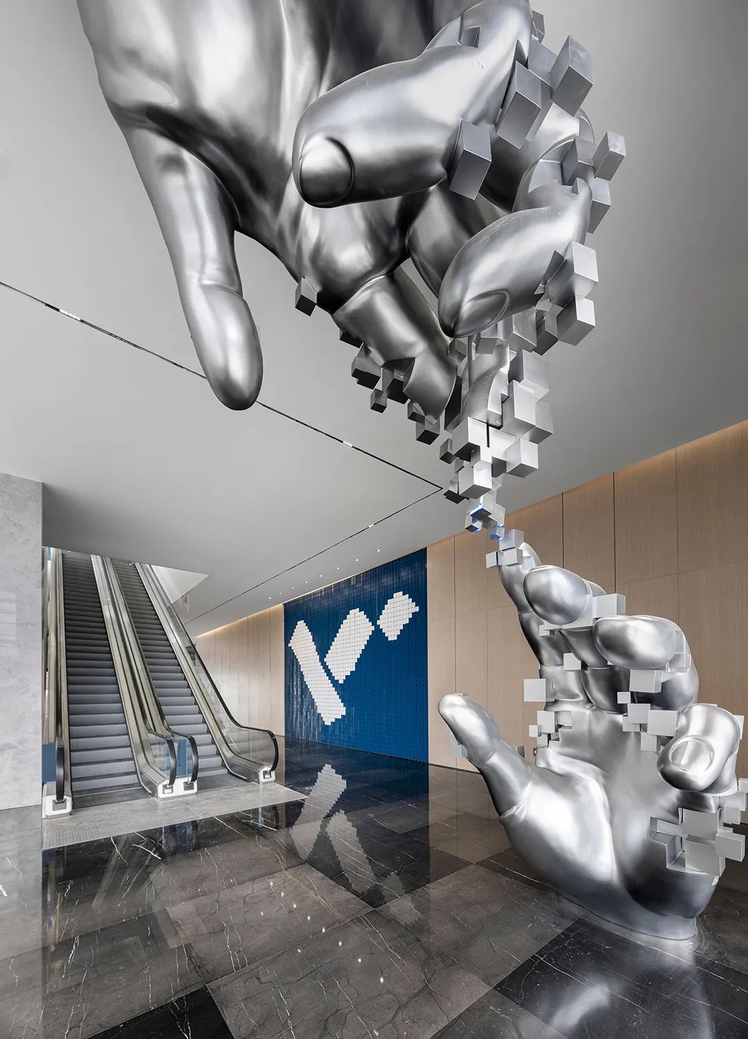 落實到具體的設計中,YuQiang&Partners 運用科技裝置、藝術象征與場景敘事,基于當代生活圖景,暢想到未來的數字化世界,引導體驗者感知現實與虛擬、當下與未來的交織對話,塑造體驗者在空間中的內在精神聯結與情感共鳴。