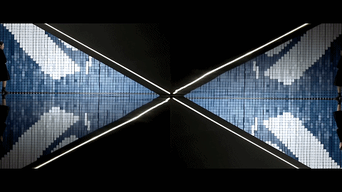 經過陣列燈光環形裝置,仿佛穿過如光纖一般的時光隧道,遇見人與科技共生的未來 —— 西斯廷教堂天頂壁畫《創世紀》里那兩只將要觸碰的、要帶人進入新紀元的手。