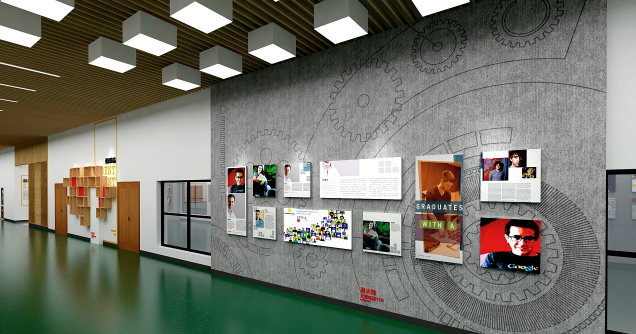 墻面文化設計,是塑造良好的校園環境最直觀的方式,通過“讓一面墻說話”的方式傳達給師生積極的理念、觀點、教學目標,從而提高教學質量、學生基本素質和個性品質。好的墻面文化設計,不僅要在內容上達到特色文化建設的目的,更要在視覺上與內容相結合,讓師生身在其中,感在其中,悟在其中,長在其中。