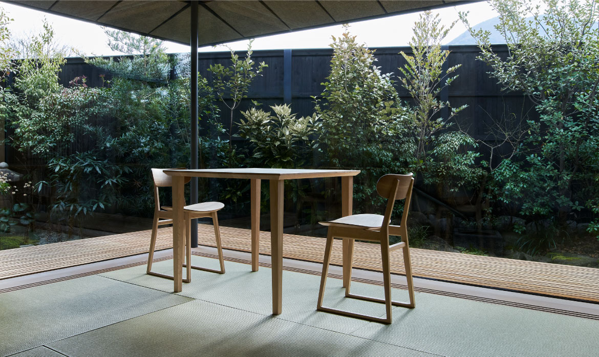 在日本的空間里心情舒暢地收納的椅子的陣容。名字也叫“SUWARI(坐)”。無論是木頭、榻榻米、地毯,都是不會給地板造成負(fù)擔(dān)的腳的構(gòu)造,是將所有“坐”的活動變成舒適風(fēng)景的家具。