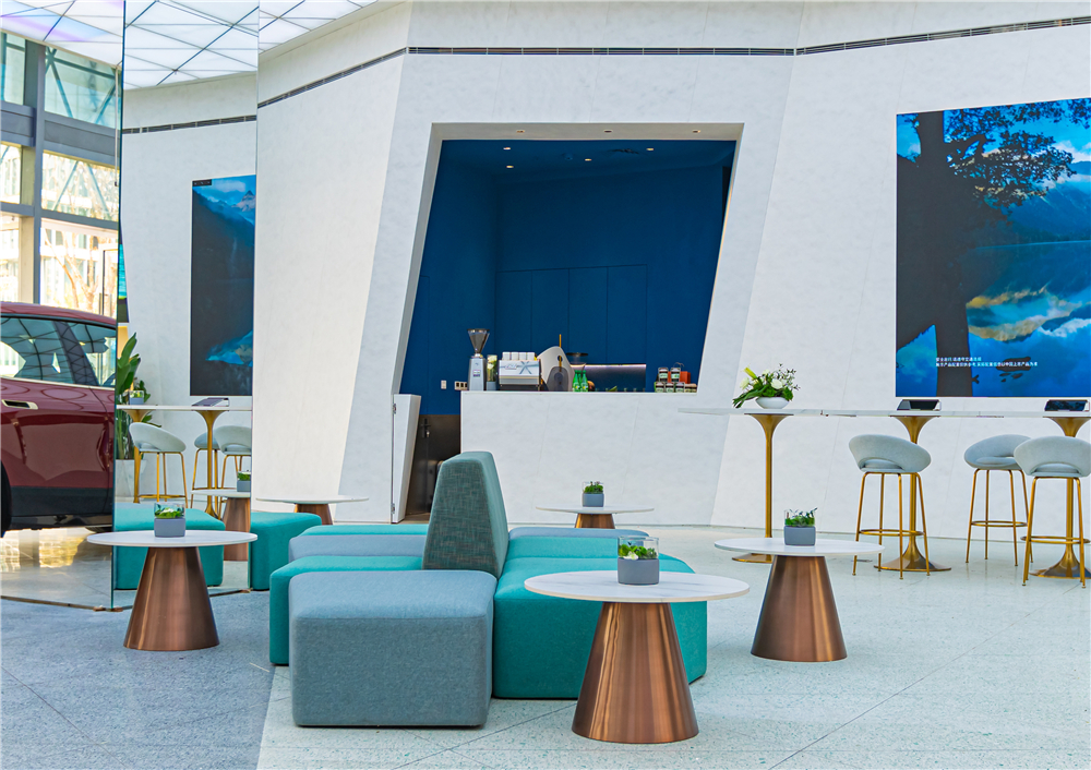 項目的其他選材工藝,也無一例外貫徹了寶馬對自然永續(xù)的堅持:墻面材料采用了高機(jī)能且環(huán)保的特衛(wèi)強(qiáng),家具及展示道具也全部經(jīng)過環(huán)保認(rèn)證……