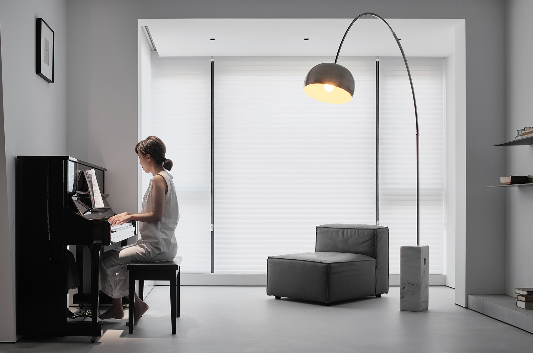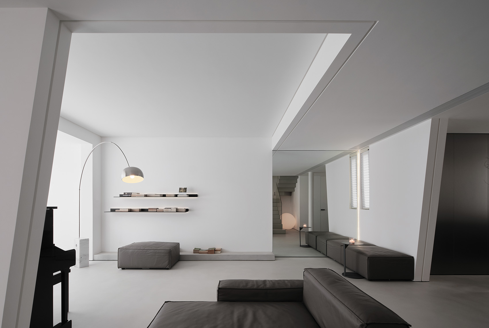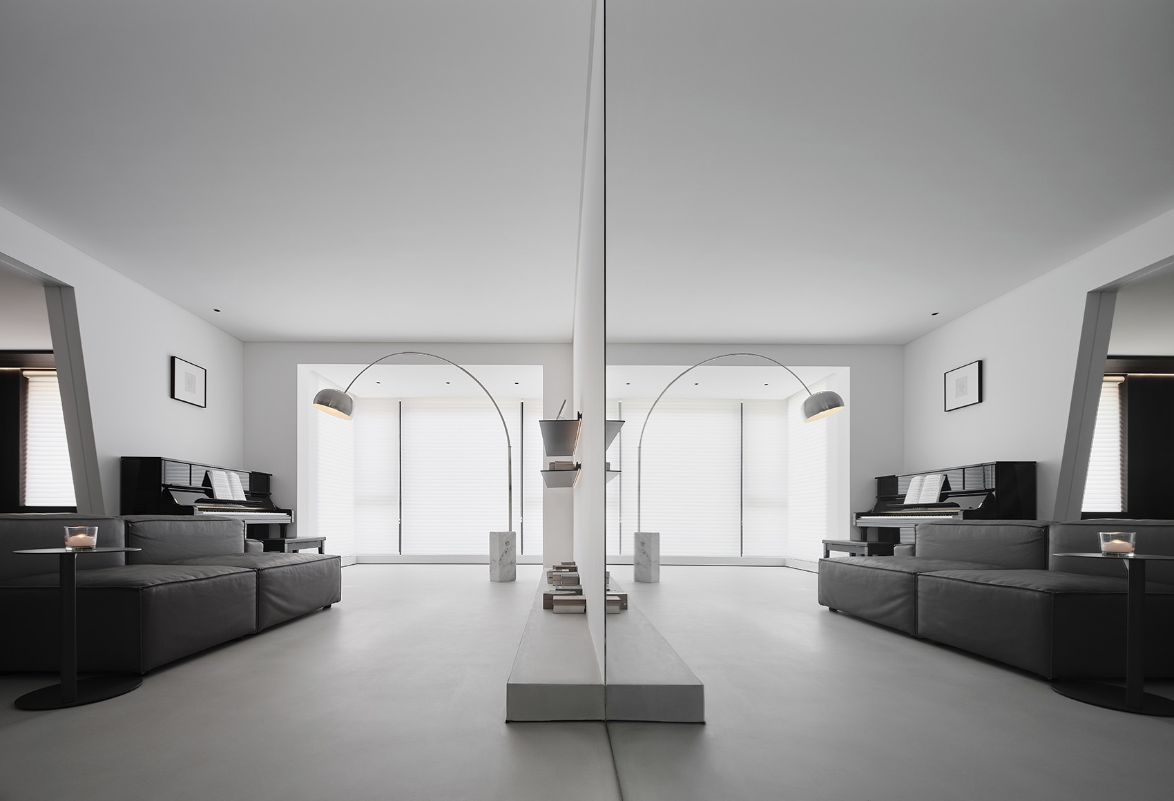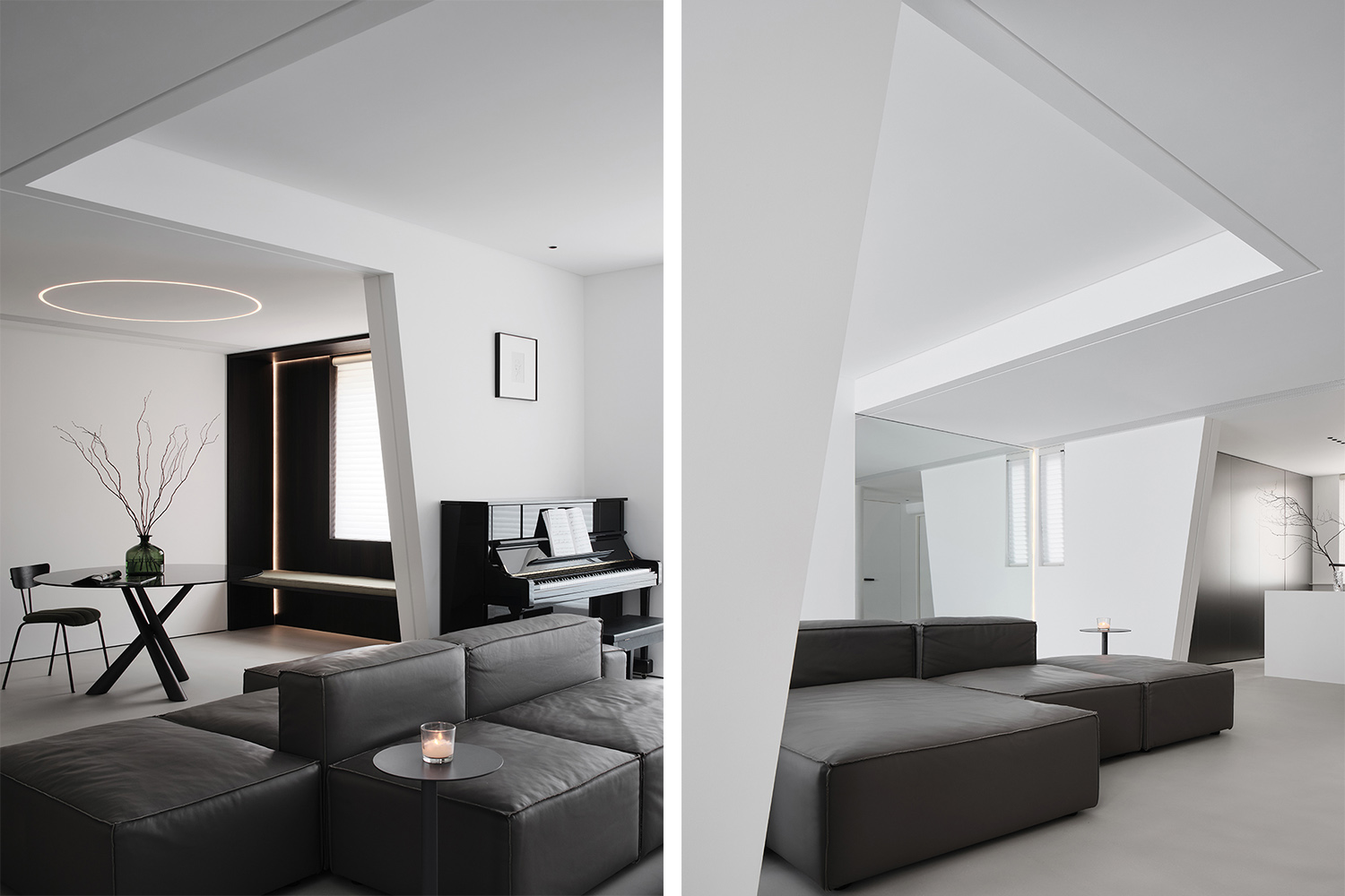 由外向內的設計的同時由內向外的設計,制造必要的張力會讓入口更具魅力。人們平常活動的平面空間之外,還有上、下部分空間所產生的拉力存在于住宅的縱向兩極,而這種拉力正是靠樓梯牽引,也正是上和下的空間變化讓我們的想象力有所去處。上樓或下樓時,以此帶來的視角的改變,離開常規的水平面。