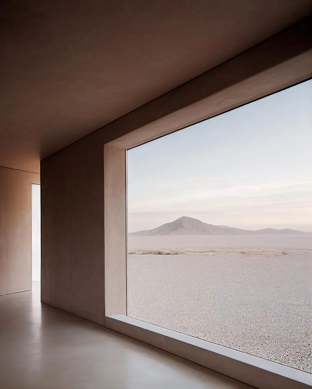 美國內華達州的黑巖沙漠是大自然的鬼斧神工之作,冰河時代留下的巖床和高山組成了壯麗的風景線。這座位于沙漠之中的度假別墅以沙色的混凝土形體呼應環境,并利用住宅大尺度的窗戶框住了無人的景觀,詮釋在地性的設計思考。